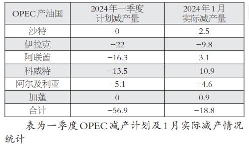 春节假期期间,国际油价较节前涨超3%,主要原因有两方面:一是OPEC坚持减产有一定成效;二是中东地缘政治局势充满不稳定性。从OPEC最新公布的1月数据来看,OPEC依然在坚定推进减产。考虑到新增减产计划的时限是2024年一季度,OPEC整体的减产履行率已超33%,进度向好,其中伊拉克完成约50%进度,因此OPEC产油国实际上只有阿联酋还没有进展。巴以冲突、俄乌冲突以及红海局势的动荡在近期都对原油市场造成了较大的冲击,这也是假期油价上行的主要原因。但地缘政治局势往往具有很大的波动性,一旦某一地区的冲突得到缓和,后续油价或回吐涨幅。